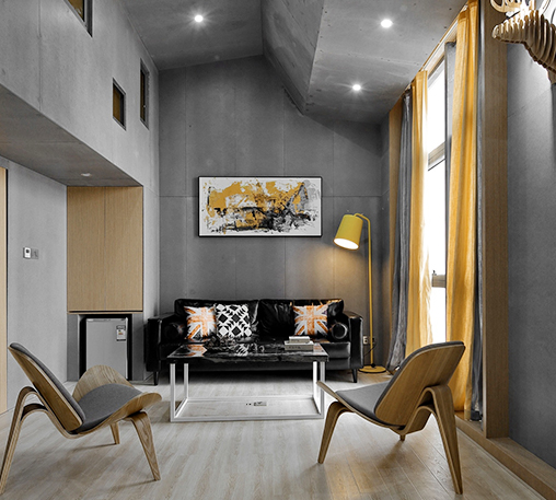 本案是一個(gè)由兩套40平方的小戶型打造而成,作為南寧小型展廳空間裝修,設(shè)計(jì)師利用了層高4.3米的優(yōu)勢,通過增加部分閣層,將本不大的面積進(jìn)行放大。鑒于原始建筑結(jié)構(gòu)中的梁位粗大而低沉,設(shè)計(jì)師并未做過多的處理,而是利用幾何構(gòu)造,將梁位融入到整個(gè)空間,讓原有的空間更具層次感和立體感。作為南寧小型展廳空間裝修、南寧LOFT展廳設(shè)計(jì)的樣版,設(shè)計(jì)師在設(shè)計(jì)上,簡化了繁雜的修飾,采用水泥板、木飾面板、槽鋼等簡單的材料,將硬朗的工業(yè)風(fēng)和簡約的現(xiàn)代風(fēng)的結(jié)合~
