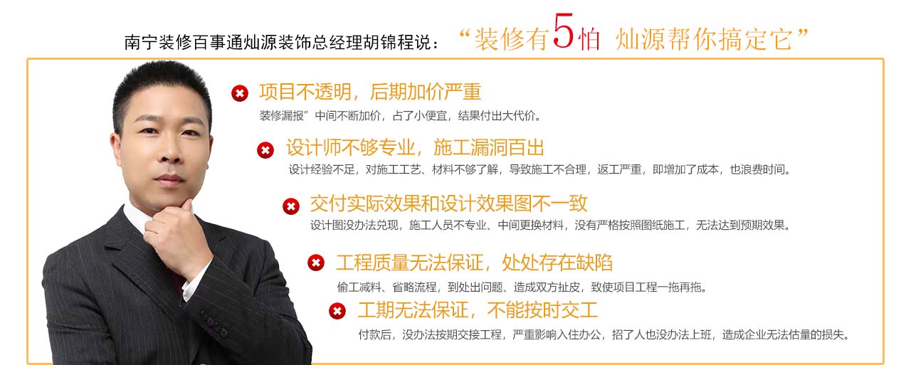 燦源裝飾是一家擁有國家裝飾裝修二級資質(zhì)和11年室內(nèi)裝飾工程設計、施工經(jīng)驗的南寧裝修公司。公司一直致力于打造高品位的辦公室裝修設計、商業(yè)空間,為客戶提供方便快捷的一站式服務。公司倡導透明化裝修,擁有O2O工程監(jiān)控系統(tǒng),實現(xiàn)工地全天候視頻直播體系,我們敢于將裝修主動權交還到業(yè)主手中,讓業(yè)主實時掌握工地信息,做質(zhì)量可靠的放心工程。 燦源裝飾的宗旨...